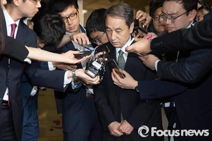 (서울=포커스뉴스) 가습기 살균제 사망사건 관련 조사를 받기 위해 신현우 전 옥시 대표가 9일 오전 서울 서초구 서울중앙지방검찰청으로 출석해 취재진의 질문을 받고 있다.