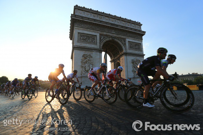 다음 샹젤리제 거리 차 없는 날 행사는 6월 5일에 열린다.2013년 투르드 프랑스 대회에 참가한 사이클 선수들이 파리 개선문 앞을 지나고 있다. 파리시 당국은 매월 첫 번째 일요일에 시행한 샹젤리제 거리 '차 없는 날' 행사를 시민과 상인은 물론 파리를 찾는 관광객들이 매우 만족하고 있다고 밝혔다. (Photo by Doug Pensinger/Getty Images)2016.05.09 ⓒ게티이미지/이매진스