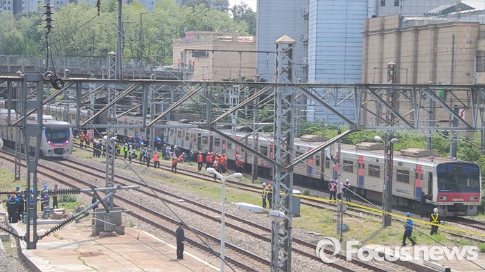 (서울=포커스뉴스) 9일 오전 서울 노량진역에서 경인선 급행열차가 탈선해, 코레일 직원들이 복구작업을 벌이고 있다. 이 사고로 구로역에서 용산역까지 5개구간 급행열차의 운행이 중단됐으며, 부상자는 없는 것으로 알려졌다. <사진=포커스뉴스 영상 캡쳐>
