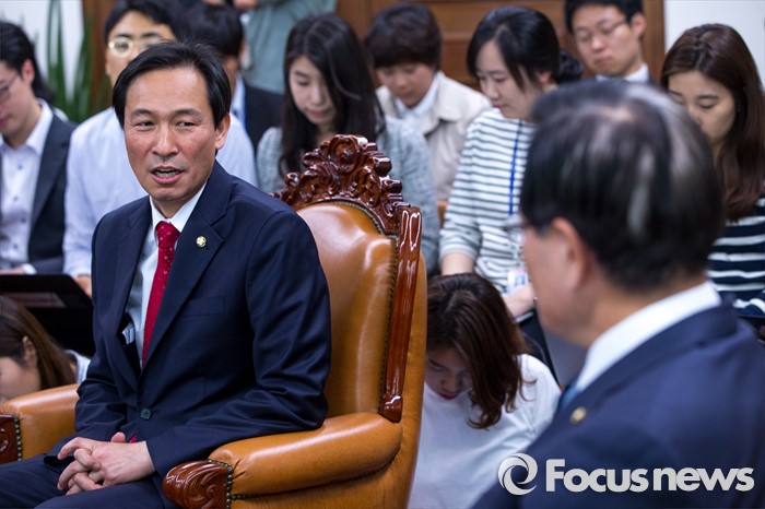 (서울=포커스뉴스) 우상호(왼쪽) 더불어민주당 원내대표가 9일 오전 서울 여의도 국회에서 정의화 국회의장을 예방 하고 있다.