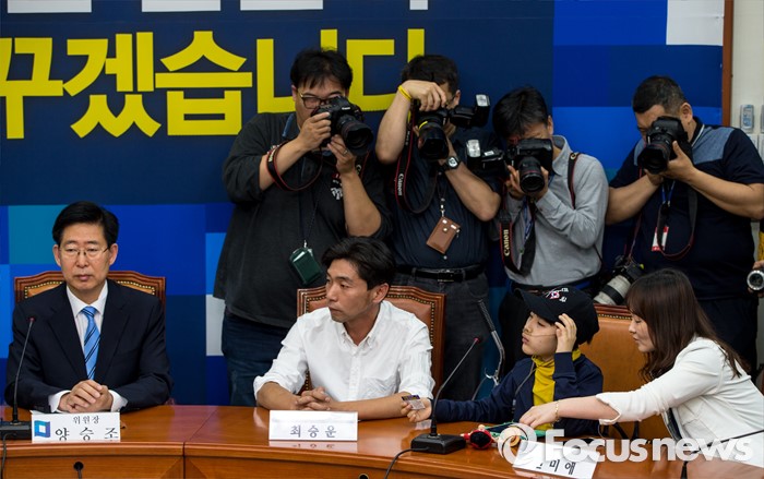 (서울=포커스뉴스) 9일 오전 서울 여의도 국회에서 열린 '더불어민주당, 가습기살균제 대책특위 1차회의'에 참석한 가습기살균제 피해 가족 최승운(왼쪽 두 번째) 씨가 발언 하고 있다.