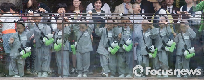 (용인=포커스뉴스) 9일 오전 경기도 용인시 에버랜드에서 동자승들이 판다들을 구경하며 즐거운 시간을 보내고 있다.