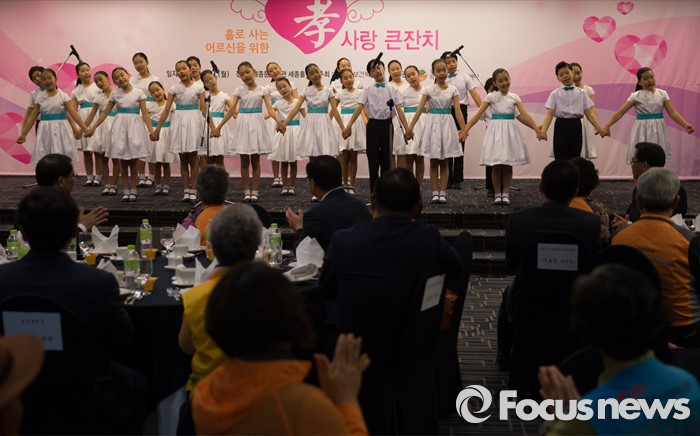(서울=포커스뉴스) 9일 오전 서울 종로구 세종문화회관에서 열린 '2016 어버이날 孝 사랑 큰잔치' 에 참여한 '대교어린이TV 합창단'이 축하공연을 하고 있다.