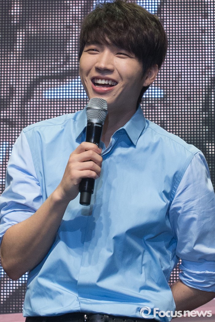 (서울=포커스뉴스) 9일 오후 서울 광진구 예스24라이브홀에서 열린 첫 솔로 미니앨범 발매 기념 프레스 쇼케이스에서 인피니트의 가수 남우현이 사회자의 질문에 답변을 하고 있다.