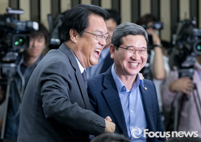| △ 정진석-김학용, 활짝 웃으며 인사 |