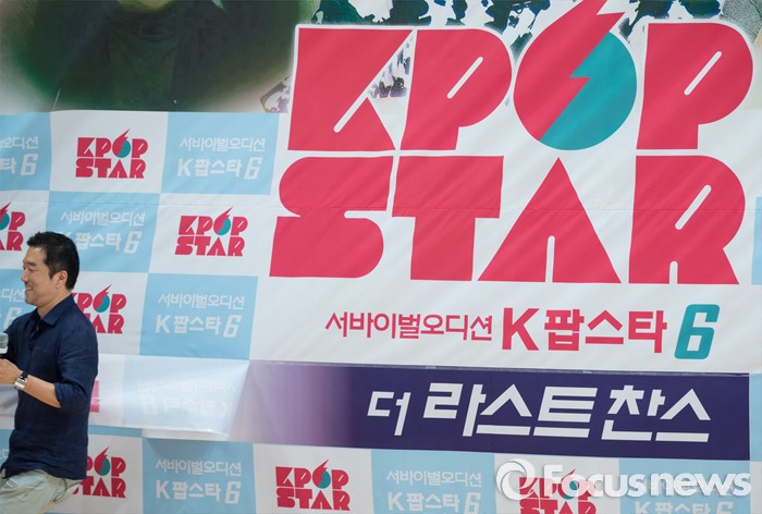 (서울=포커스뉴스) 9일 오후 서울 양천구 SBS 목동사옥에서 열린 '서바이벌 오디션 K팝스타 시즌6' 제작발표회에 참석한 박성훈 PD가 시즌6의 타이틀을 공개하고 있다.