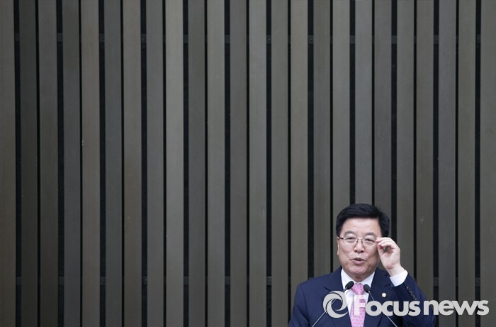 (서울=포커스뉴스) 9일 오후 서울 여의도 국회에서 열린 새누리당 20대 총선 당선자 총회에 참석한 김광림 정책위의장이 인사말을 하고 있다.