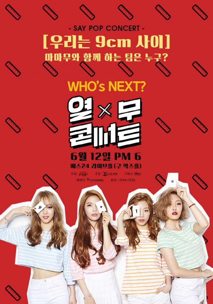포스터 속 마마무 멤버들은 ‘9+1=’이 적힌 종이를 들고 카메라를 응시하고 있다. 더해 문구에는 ‘우리는 9cm 사이, 마마무와 함께 하는 팀은 누구?’라고 적혀 있어 남성듀오 십센치를 예상케 했다.