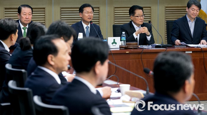(서울=포커스뉴스) 천정배(왼쪽 두번째) 국민의당 공동대표가 10일 오전 서울 여의도 국회 의원회관에서 열린 당선자 총회 및 3차 집중워크숍에 참석해 모두발언을 하고 있다.