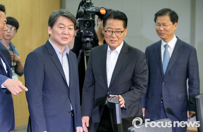 (서울=포커스뉴스) 안철수(왼쪽부터) 국민의당 상임공동대표, 박지원 원내대표, 천정배 공동대표가 10일 오전 서울 여의도 국회 의원회관에서 열린 당선자 총회 및 3차 집중워크숍에 참석하고 있다.