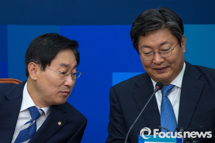 (서울=포커스뉴스) 이춘석(오른쪽) 더불어민주당 보수단체 불법자금지원 의혹규명 진상조사위원장과 박범계 간사가 10일 오전 서울 여의도 국회에서 열린 어버이연합 등 보수단체 불법자금지원 의혹규명 진상조사 TF 3차 회의에 참석해 대화를 나누고 있다.