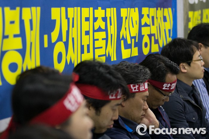 (서울=포커스뉴스) 10일 오전 서울 영등포구 한국노총회관에서 노조원들이 '양대노총 공공부문 공대위 기자회견'에 참석하고 있다.