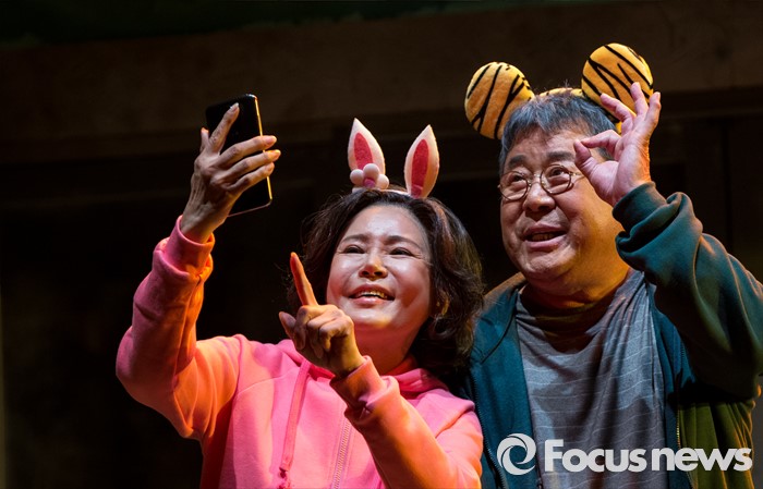 (서울=포커스뉴스) 10일 오후 서울 종로구 동숭아트센터에서 열린 연극 '장수상회' 프레스콜에 참석한 배우 백일섭, 김지숙이 극의 주요장면을 시연하고 있다.