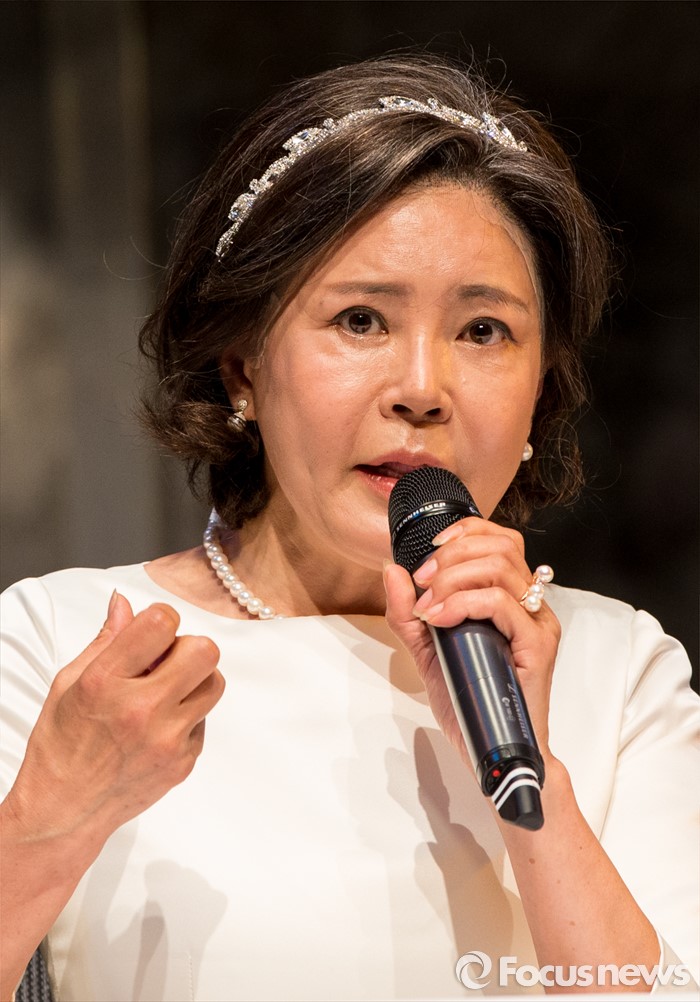 (서울=포커스뉴스) 10일 오후 서울 종로구 동숭아트센터에서 열린 연극 '장수상회' 프레스콜에 참석한 배우 김지숙이 취재진의 질문에 답하고 있다.