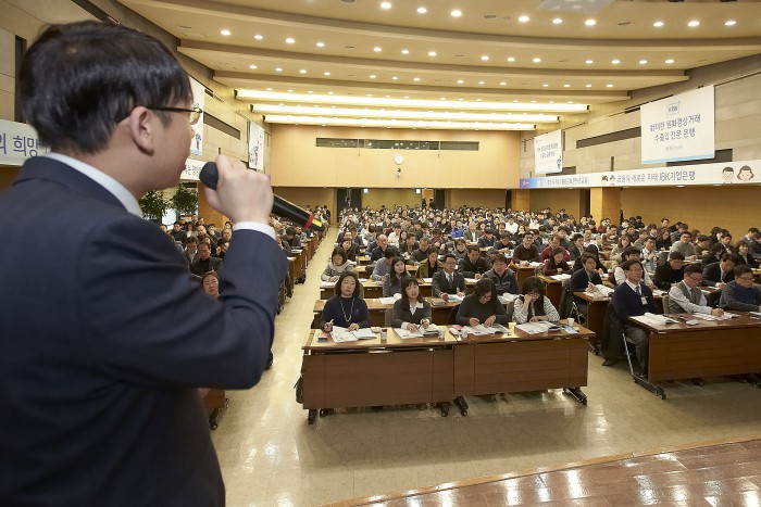 기업은행은 이란 수출기업의 신용장 거래 시 금융비용 절감을 위하여 매입외환펀드를 조성하여 환가료 감면 등 지원을 하고 있으며, 한국무역보험공사의 중소Plus플러스 단체보험 가입시 기업은행이 보험료를 전액 지원한다.'대이란 교역·투자 설명회'의 모습.<사진제공=IBK기업은행>