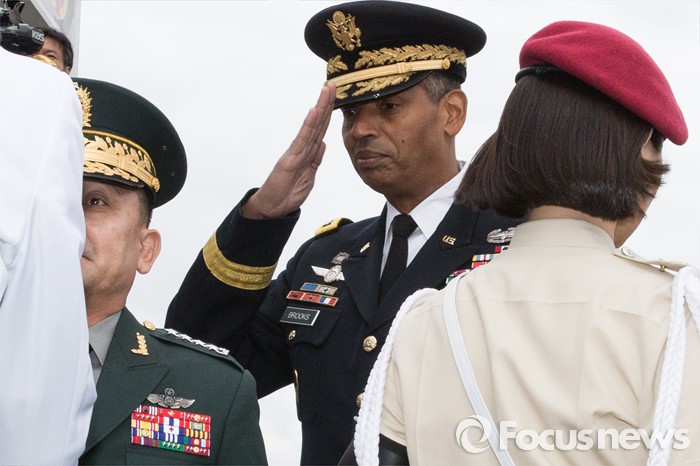 (서울=포커스뉴스) 10일 오후 서울 용산구 합동참모본부 대연병장에서 열린 환영 의장행사에서 빈센트 브룩스 신임 한·미연합사령관 겸 주한미군사령관이 의장대 사열을 하고 있다.