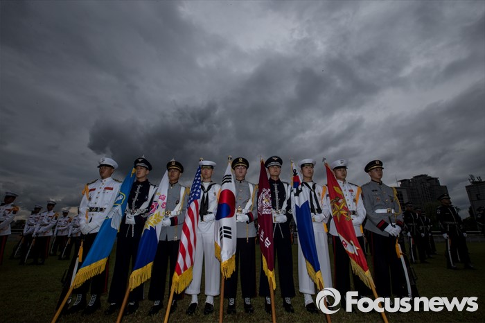 (서울=포커스뉴스) 10일 오후 서울 용산구 합동참모본부 대연병장에서 열린 환영 의장행사에서 장병들이 빈센트 브룩스 신임 한·미연합사령관 겸 주한미군사령관과 이순진 합참의장의 도착을 기다리고 있다.