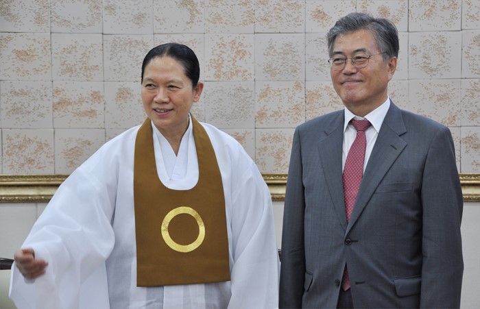 | △ 한은숙 원불교 교정원장 만난 문재인 |