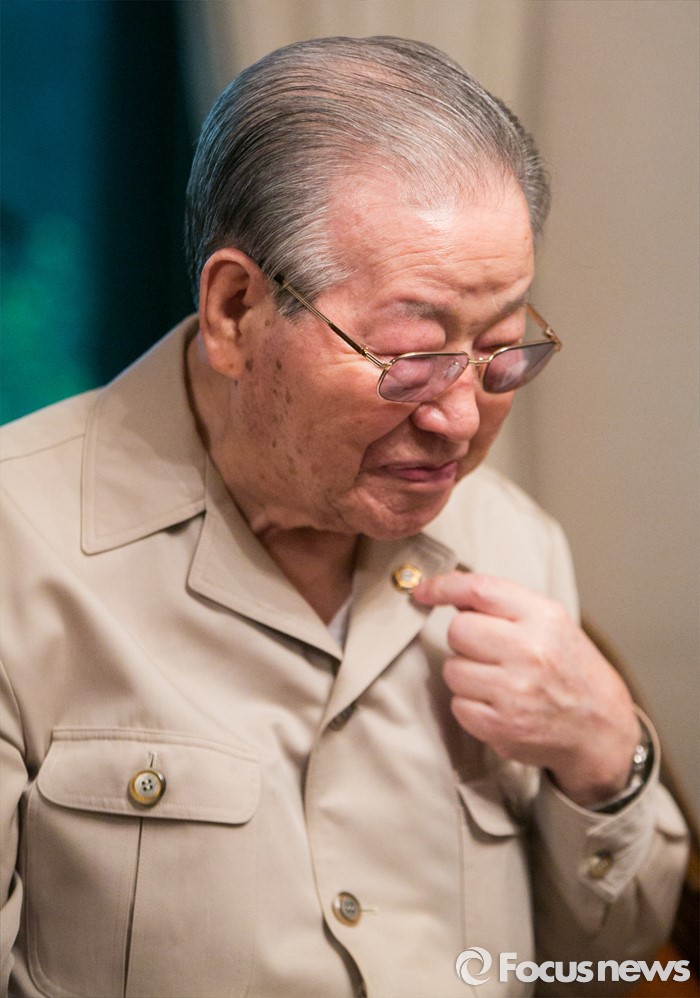 (서울=포커스뉴스) 김종필 전 총리가 10일 오후 서울 중구 자택을 방문한 정진석 새누리당 원내대표와 환담을 하고 있다.