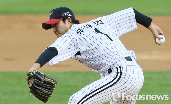 (서울=포커스뉴스) 10일 서울 잠실구장에서 열린 2016 프로야구 삼성-LG 경기에서 1회초 LG 선발투수 우규민이 투구하고 있다.