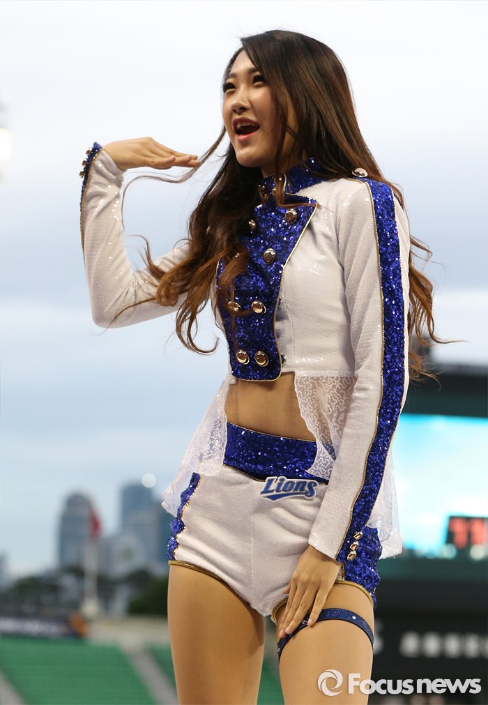 (서울=포커스뉴스) 10일 서울 잠실구장에서 열린 2016 프로야구 삼성-LG 경기에서 삼성 치어리더가 승리를 부르는 손짓으로 관중들의 응원을 유도하고 있다.