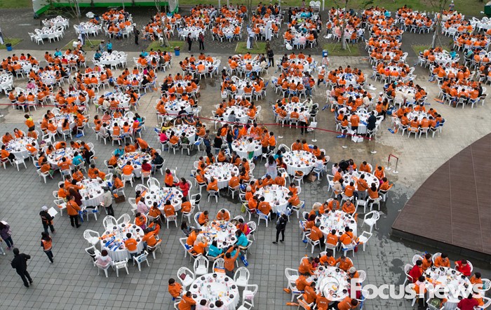 (서울=포커스뉴스) 10일 오후 서울 서초구 반포한강공원에서 중국 건강보조제품 회사 중마이과기발전유한공사 소속 임직원들이 삼계탕 만찬을 즐기고 있다.