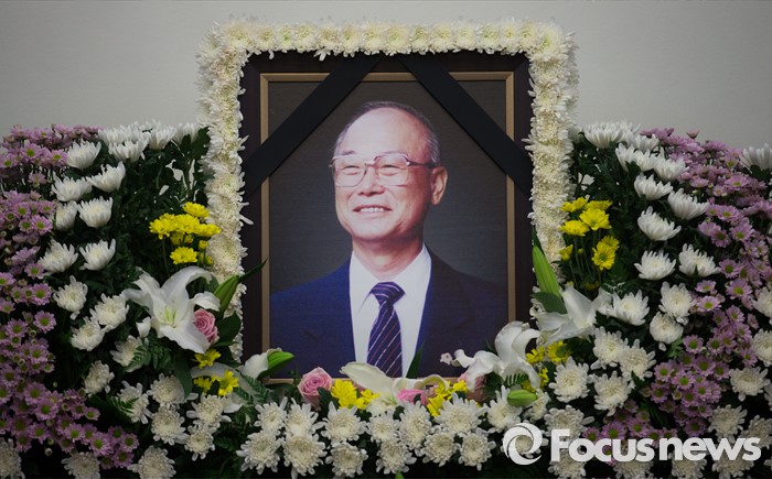 (서울=포커스뉴스) 10일 오후 서울 송파구 서울아산병원 장례식장에 마련된 故 강영훈 전 국무총리의 빈소에 고인의 영정이 놓여있다.