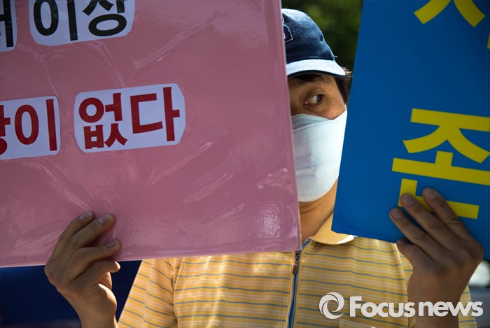 (서울=포커스뉴스) 11일 오전 서울 관악구 서울대학교 앞에서 사시존치를위한고시생모임 회원들이 교육부의 전수조사 결과 발표를 규탄하며 시위를 하고 있다.