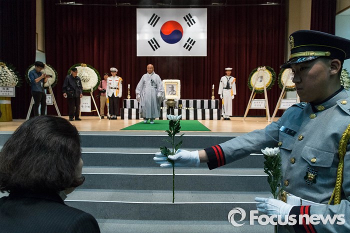 (서울=포커스뉴스) 11일 오전 서울 동작구 국립현충원에서 열린 '철기 이범석 장군 제44주기 추모제' 참석자들이 헌화 및 분향하고 있다.