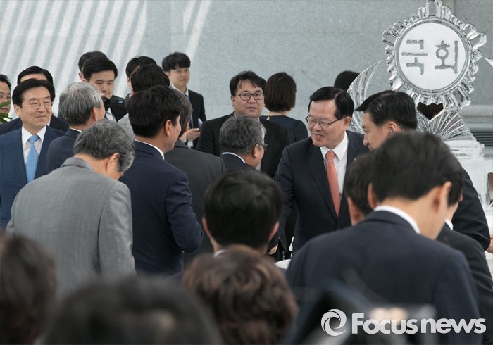 (서울=포커스뉴스) 11일 오후 서울 여의도 국회 의원회관에서 열린 20대 국회 초선의원 의정연찬회 오찬에 참석한 정의화 국회의장이 당선인들과 인사하고 있다.