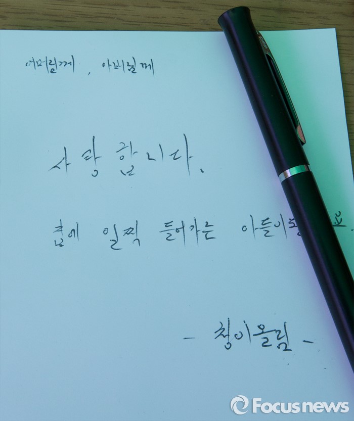 (대전=포커스뉴스) 대학축제가 한창인 11일 오전 대전 대덕구 한남대학교에서 학생이 부모님께 보낼 희망엽서가 보이고 있다.