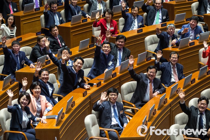 (서울=포커스뉴스) 11일 오후 서울 여의도 국회에서 20대 국회의원선거에 당선된 초선 의원들이 본회의장 체험을 마친 뒤 취재진을 향해 손을 흔들고 있다.