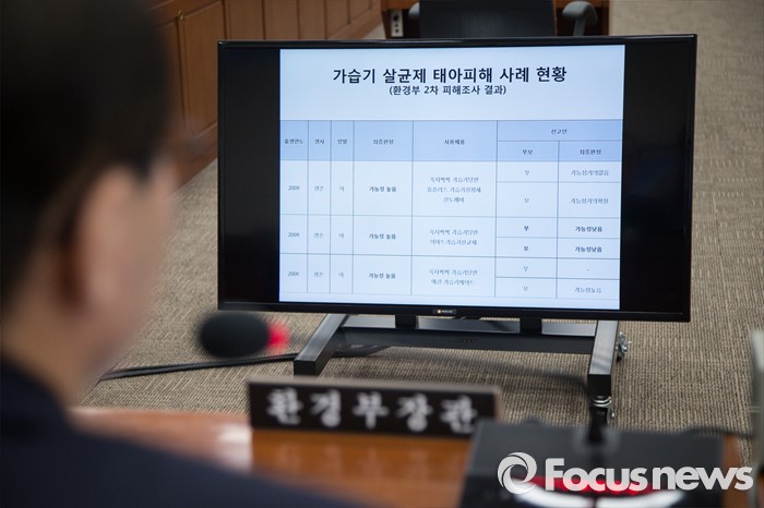 (서울=포커스뉴스) 11일 오후 서울 여의도 국회에서 가습기 살균제 관련 현안보고 등을 위해 열린 환경노동위원회 전체회의에 참석한 윤성규 환경부 장관이 태아피해 사례 현황을 보고 있다.