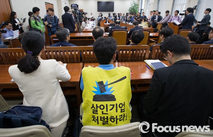 | △ 환노위 지켜보는 가습기 살균제 피해 가족 |