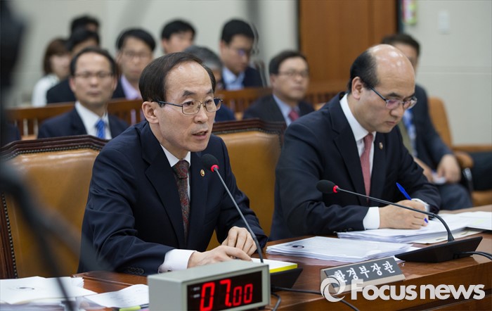 (서울=포커스뉴스) 윤성규(왼쪽) 환경부 장관이 11일 오후 서울 여의도 국회에서 가습기 살균제 관련 현안보고 등을 위해 열린 환경노동위원회 전체회의에 참석해 의원들의 질의에 답하고 있다.