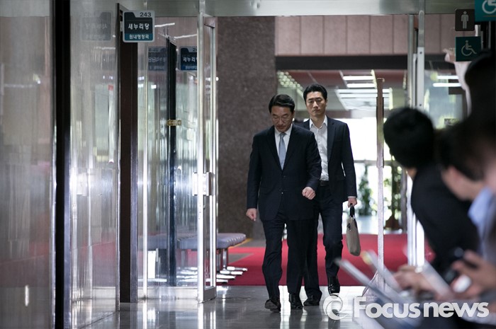 (서울=포커스뉴스) 현기환 청와대 정무수석이 12일 오전 서울 여의도 국회에서 정진석 새누리당 원내대표와 면담을 위해 이동하고 있다.