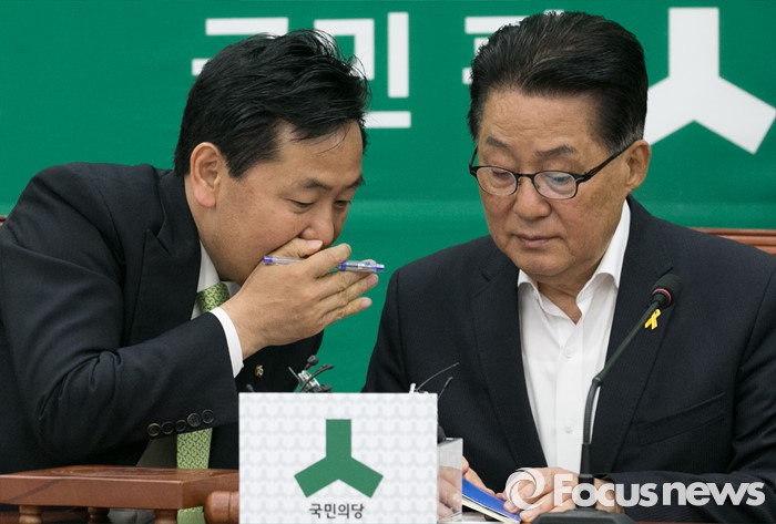 (서울=포커스뉴스) 12일 오전 서울 여의도 국회에서 열린 국민의당 원내정책조정회의에 참석한 박지원(오른쪽) 원내대표와 김관영 원내수석부대표가 대화하고 있다.