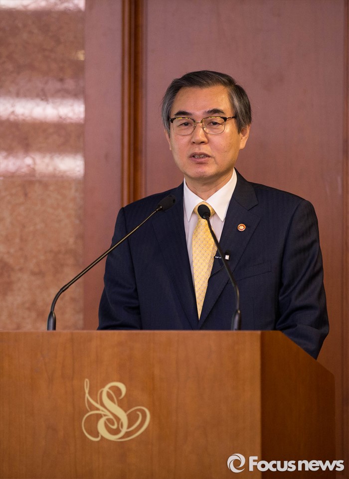 (서울=포커스뉴스) 12일 오전 서울 중구 세종호텔에서 열린 세종포럼에 참석한 정재찬 공정거래위원장이 '2016년 공정거래 정책방향'을 주제로 특강을 하고 있다.