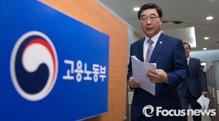 (세종=포커스뉴스) 이기권 고용노동부장관이 12일 오전 세종시 정부세종청사 고용노동부 기자실에서 임금체계 개편에 대한 브리핑을 하기 위해 입장하고 있다.