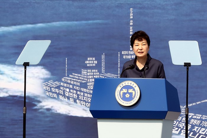 정부는 국가 전략분야에 대해 신속하고 집중적인 지원을 통해 글로벌 시장을 선도할 수 있도록 ‘국가전략 프로젝트(가칭)’ 추진한다. 각 부처 추천 및 세부 기획을 거쳐 내년 우선 추진할 프로젝트는 차기 과학기술전략회의에서 심의·확정 후, 신속히 사업에 착수할 계획이다.(서울=포커스뉴스) 박근혜 대통령이 1회 서해수호의 날 기념식에 참석해 기념사를 하고 있다. <사진제공=국가보훈처> 2016.03.25 포커스포토