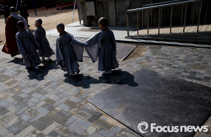 (서울=포커스뉴스) 석가탄신일을 이틀 앞둔 12일 오전 서울 종로구 조계사에서 동자승들이 경내를 둘러보고 있다.