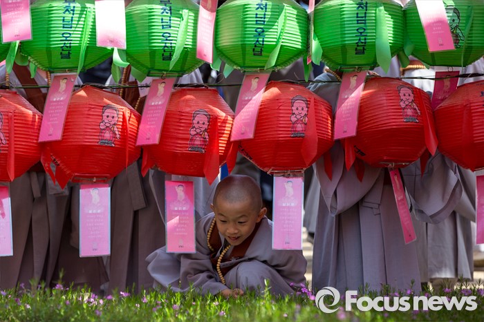 (서울=포커스뉴스) 석가탄신일을 이틀 앞둔 12일 오전 서울 종로구 조계사에서 동자승들이 경내를 둘러보고 있다.