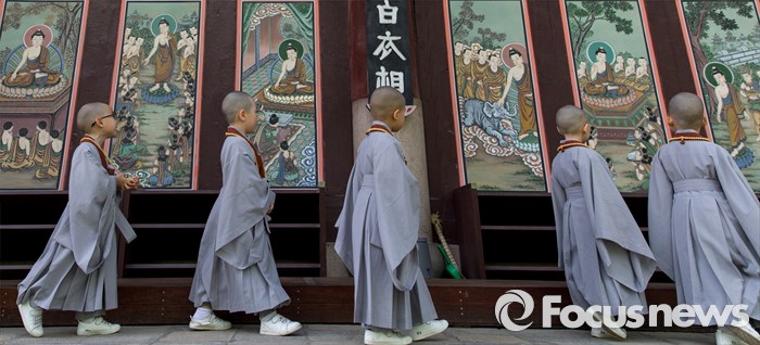 (서울=포커스뉴스) 석가탄신일을 이틀 앞둔 12일 오전 서울 종로구 조계사에서 동자승들이 경내를 둘러보고 있다.