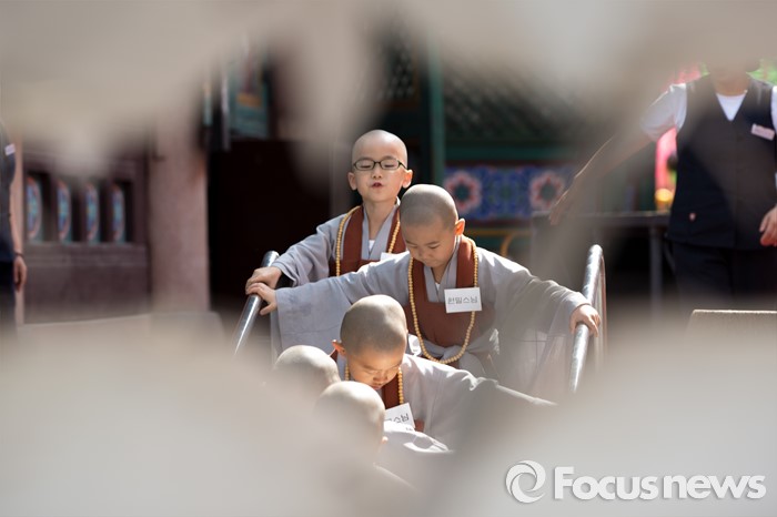 (서울=포커스뉴스) 석가탄신일을 이틀 앞둔 12일 오전 서울 종로구 조계사에서 동자승들이 경내를 둘러보고 있다.
