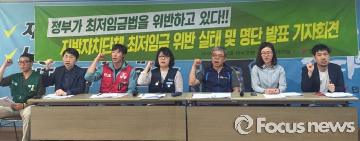 오민규 미조직비정규직전략사업실장은 "지난해 전국 지자체 245곳 중 72곳이 최저임금법을 위반했는데 올해는 40곳이 더 늘었다. 공공기관의 최저임금 위반 실태가 심각하다"며 "정부조차 법을 안 지키는데 민간 사업장에 최저임금을 준수하라고 할 수 있겠냐"고 말했다.