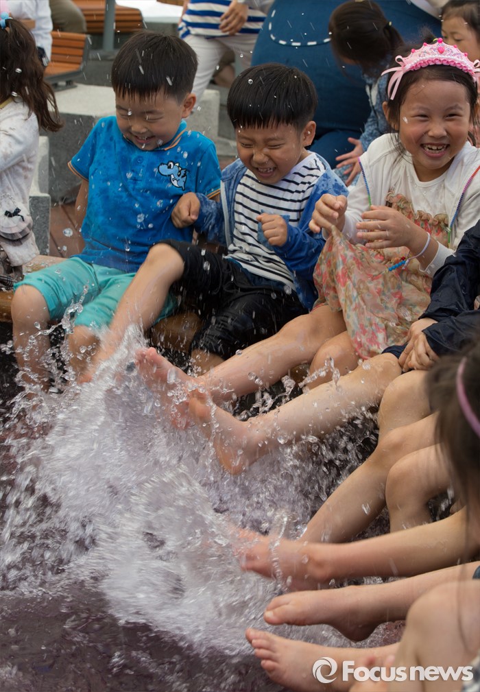 (대전=포커스뉴스) 유성온천문화축제를 하루 앞둔 12일 오전 대전 유성구 유성온천문화공원 족욕장을 찾은 어린이들이 족욕을 즐기고 있다. 유성온천문화축제는 13일부터 15일까지 열리며 국내 최초로 한방족욕카페를 개장해 태양인과 태음인, 소양인, 소음인 사상체질별 맞춤 족욕장을 운영한다.