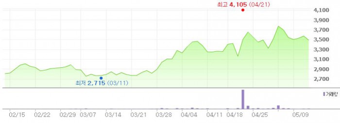 다만, 그는 "이러한 정책이 채권 안정화에 도움이 많이 되면서 이후 중국쪽 매출도 점차 회복될 것으로 전망된다"고 덧붙였다.최근 3개월간 에스에프씨 주가 추이 <그래픽출처=네이버>