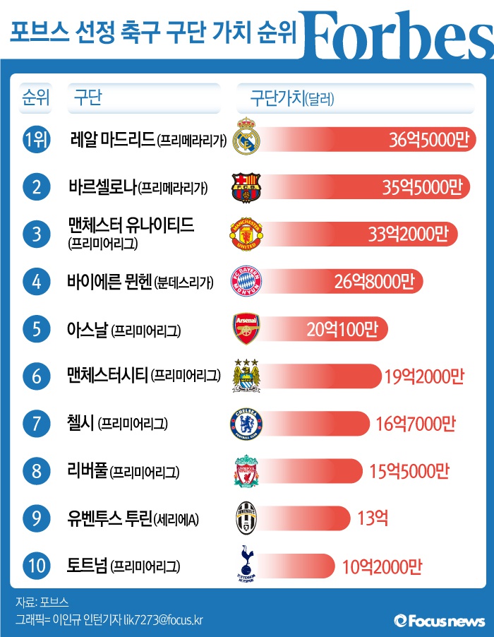 | △ [그래픽] 포브스 선정 축구 구단 가치 순위 |