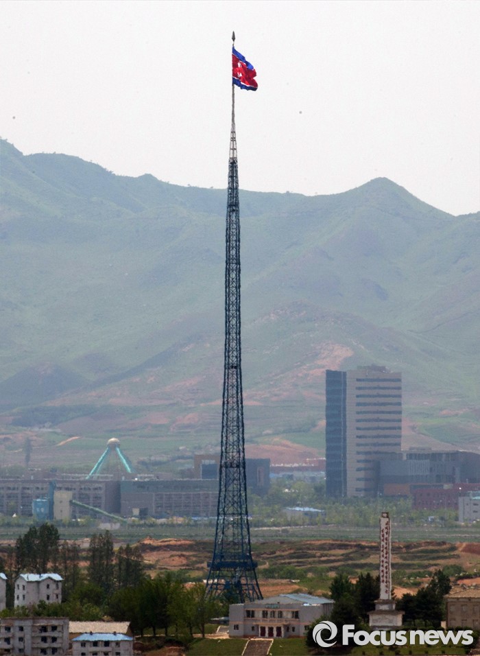(파주=포커스뉴스) 36년 만에 열린 북한의 제7차 노동당 대회에서 김정은 국방위원회 제1위원장이 노동당 위원장으로 취임했다. 이번 당대회는 김정은의 독재를 더욱 공고히 하기 위한 우상화 노선의 연장선이라는 평가가 나오고 있다. 사진은 12일 오후 경기도 파주시 공동경비구역(JSA) 오울렛 초소에서 바라본 북한 기정동마을의 모습.