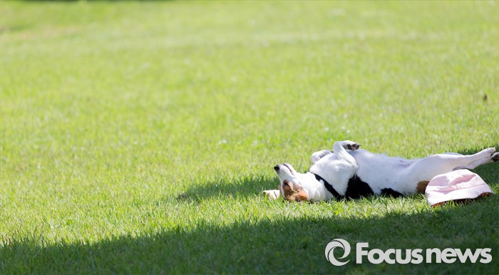 (서울=포커스뉴스) 12일 오후 서울 광진구 건국대학교 잔디광장에서 수의과대학 주최로 열린 '반려견과 함께하는 축제, 반함'에서 한 반려견이 햇볕을 쬐고 있다.